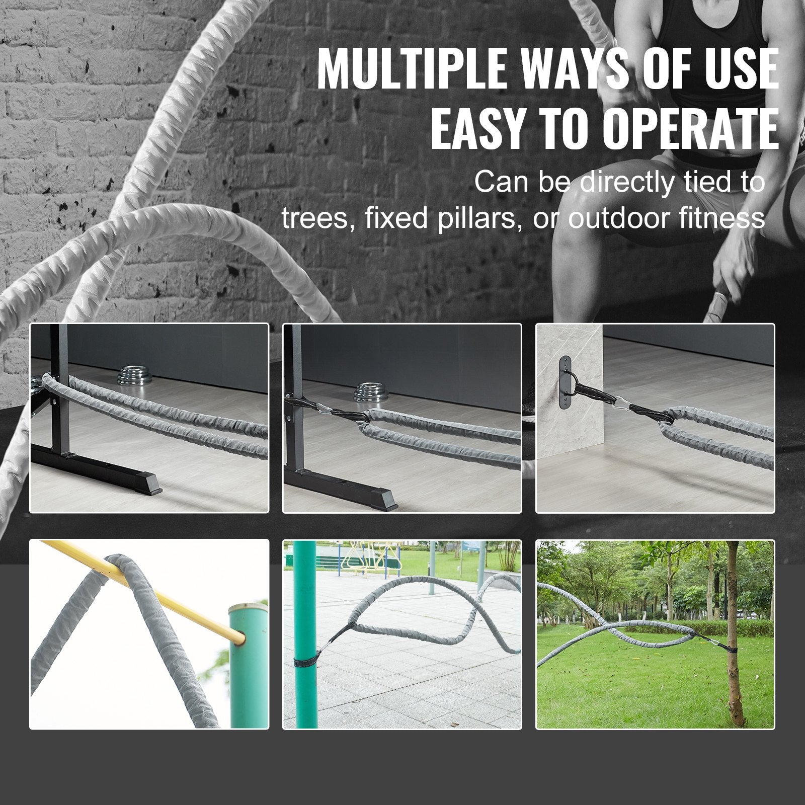 30ft Heavy-Duty Polyester Battle Rope with Anchor Kit – Gray