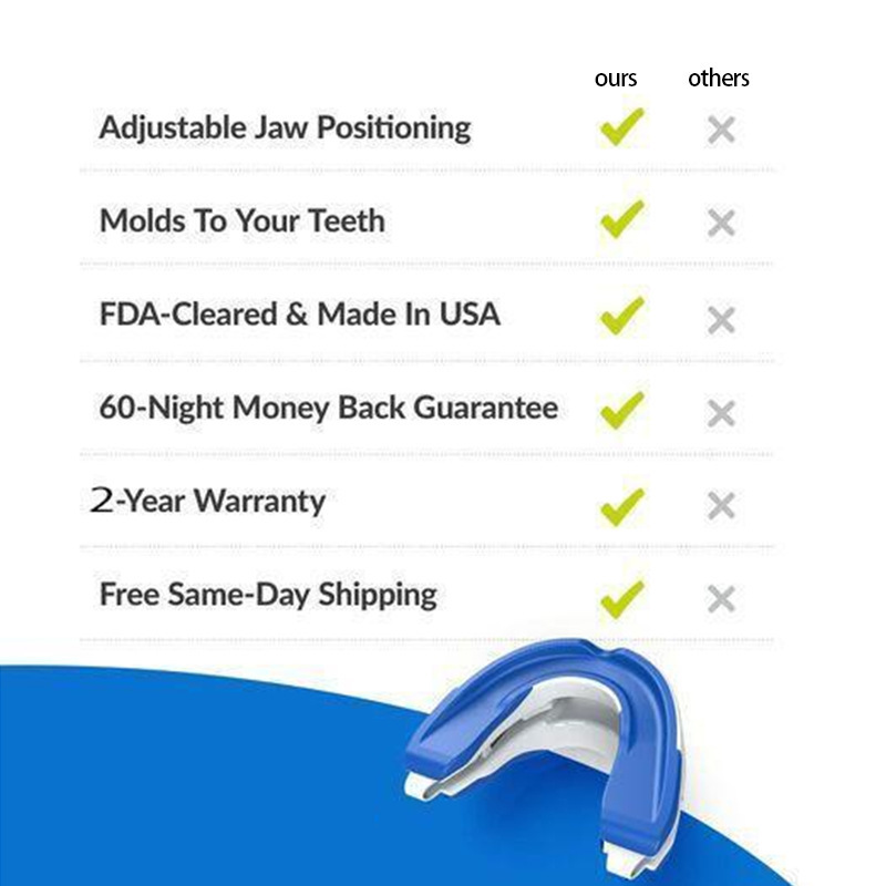 Anti-snoring: Effectively reduces snoring by positioning the jaw forward to open airways.